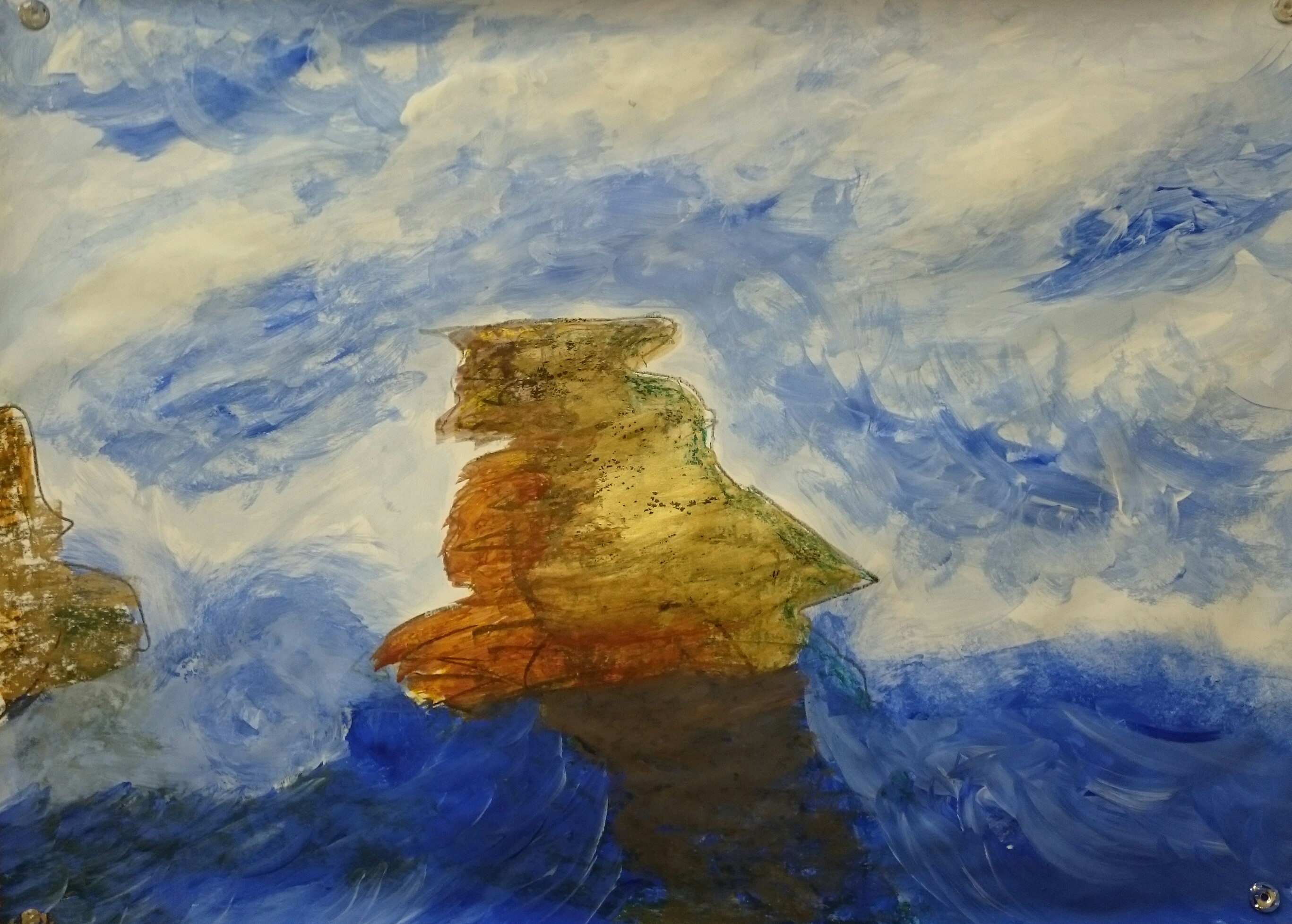 Ich glaube, es ist ein Schiff mit Schatten, aber da es mit dem Licht der Sonne, die auf es fällt dargstellt ist, hat es etwas mit dem Meer Verbundenes - mir gefällt es