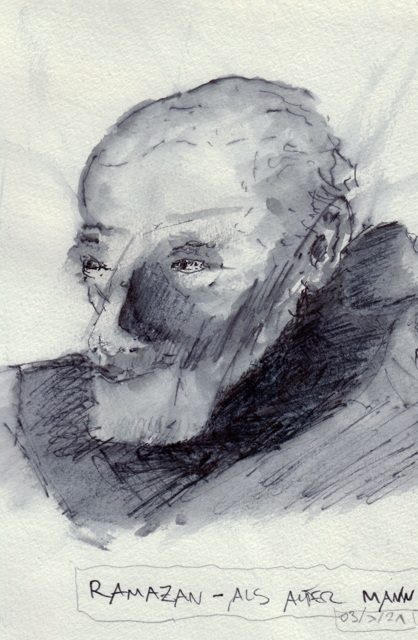 ich finde die skizze von ramazan als altem mann übrigens gar nicht "verkackt", sondern wirklich gut; für mich sind das ganz unterschiedliche eigenständige bilder.