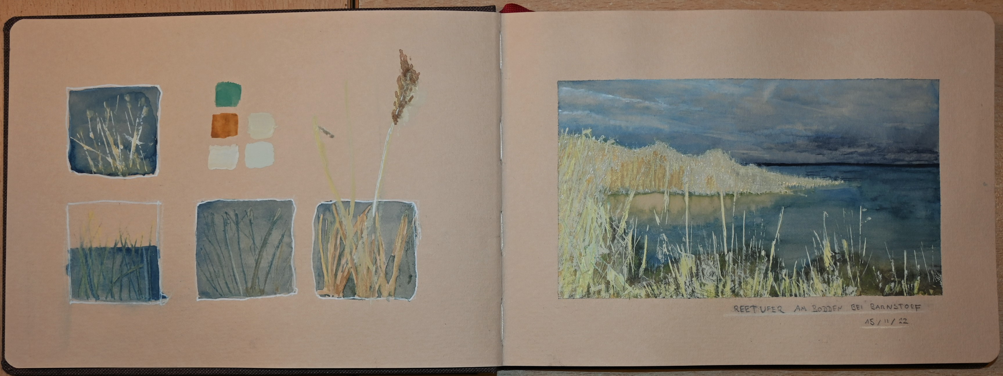 Studie "Reetufer am Bodden bei Barnstorf" [Aquarell, Mischtechnik]