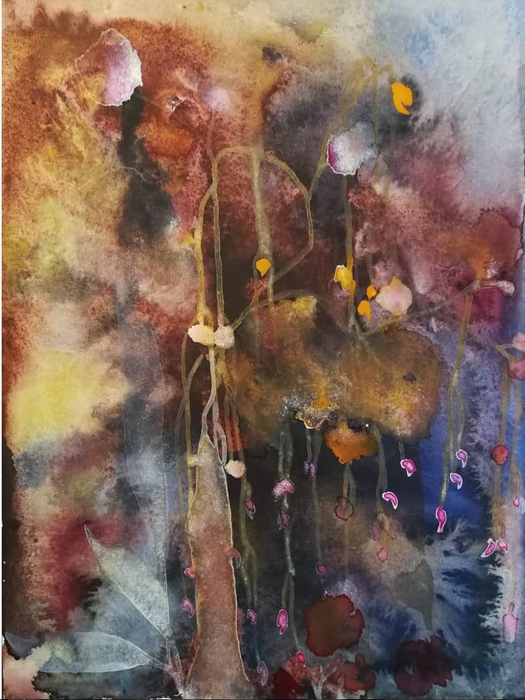 Guten Abend. In beiden Bildern gefällt mir die wenig gesättigte Farbpalette, wobei im zweiten Bild diese stark gesättigten magenta-farbenen Partikel etwas aus der Reihe zu fallen scheinen, als wären sie aus einem anderen Medium geschnitten. Im ersten Bild gefällt mir, als alter Nebelfreund, besonders der dunstige, hell verwaschene Hintergrund, der mir, als alter Raumtiefenfreund, so eine schöne, neugierig machende Raumtiefe erzeugt. Interessant ist auch die rote Blüte oben links im Vordergrund, weil die so einen klaren "Line-Art"-Umriss bekommen hat -- Zufall oder Absicht?
