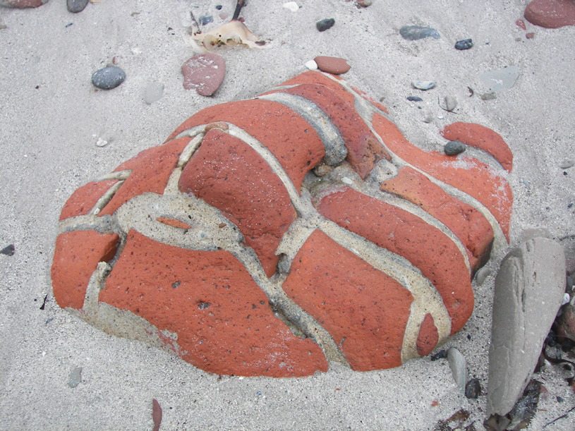 Diese wellenförmig geschliffenen Ziegelmauerfragmente sehen ja fantastisch aus! Zuerst musste ich kurz überlegen, wer da wohl der Schleifer war, Mutter Natur oder Künstler Tom.