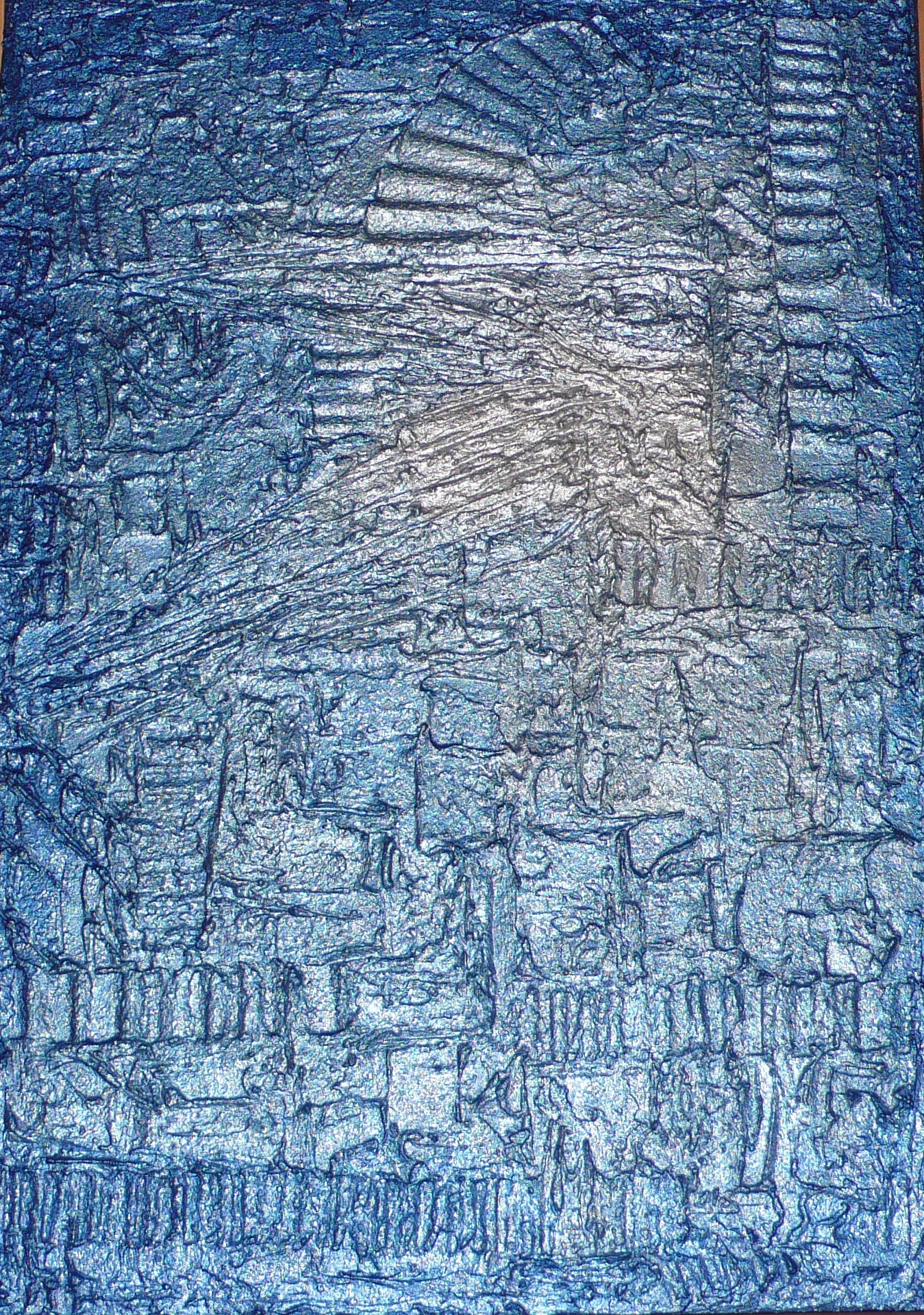 das Technisch-Handwerkliche: Bemerkenswert, vor allem dieser reliefartige Farbauftrag. Den Metallic-Look kenne ich nur von Fahrzeugen, weshalb er mich hier mehr an lackiertes Blech erinnert, als mir lieb ist. Interessant die Balance, die Du zwischen Abstraktion und Abbild gehalten hast. Überzeugt sie mich? Ich habe Schwierigkeiten mit einer solchen partiellen Mimesis. Entweder ganz oder gar nicht!