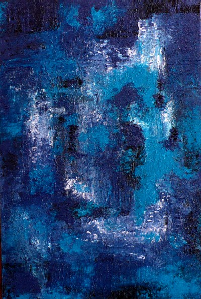 Diese leuchtend blaue Tiefe, Schimmer und Schatten hat eine starke Sogwirkung. Man wird ins Blaue hinein, hinuntergezogen. Die Farbe ist so aufgetragen, dass große Ruhe, Tiefe und durch Konturen auch so etwas wie Sinnlichkeit entsteht.