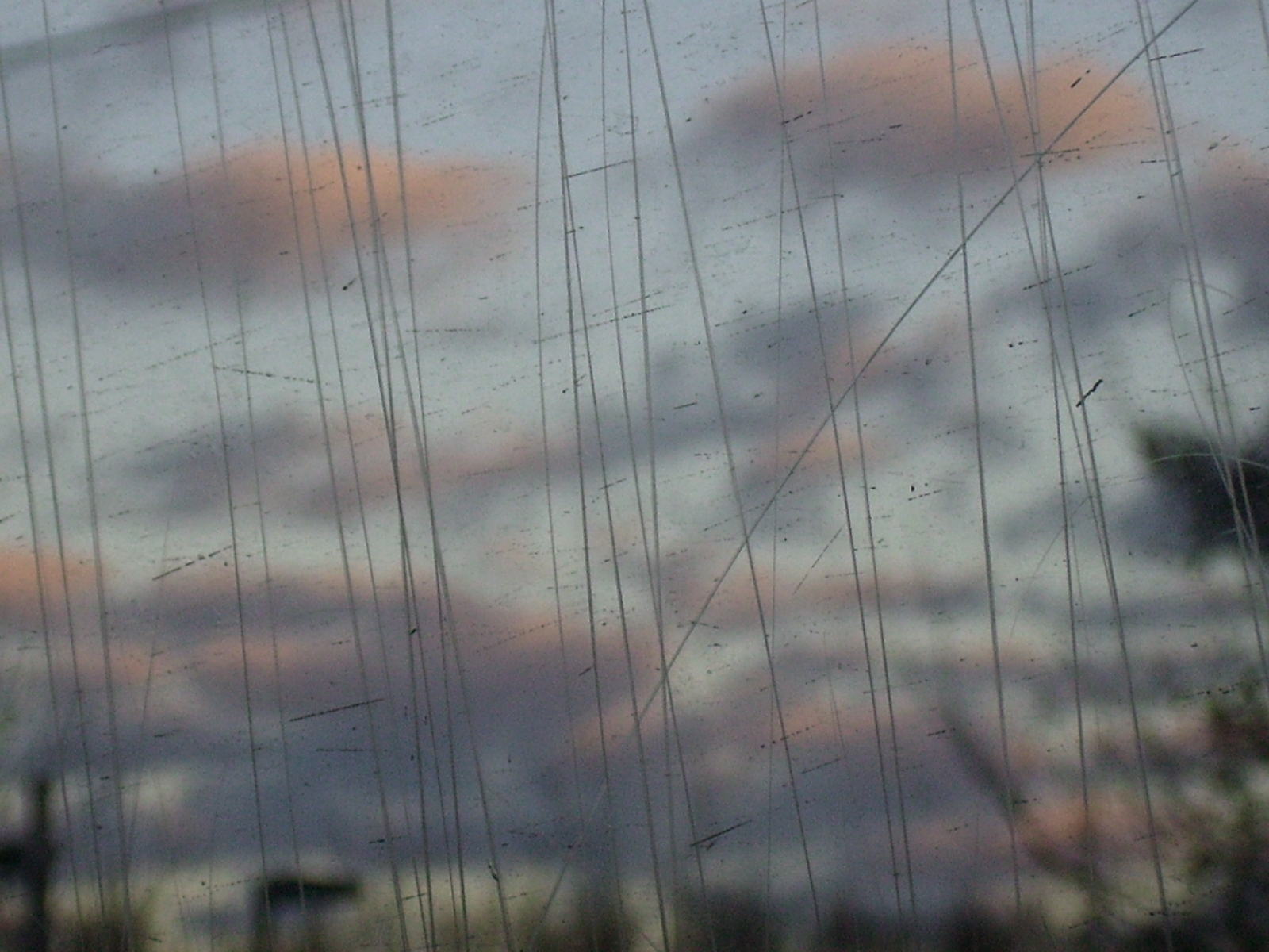 Das - oben - war Morgenhimmel durch gescratchte Scheibe.