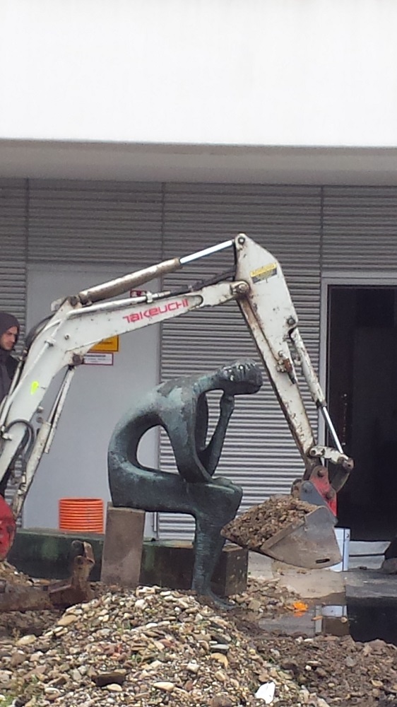 im zuge von umbauarbeiten hat man die figur versetzt und ich habe ab und an fotos gemacht von dem denker. dann schickte ich die fotos an die pressestelle mit der anmerkung, dass ich die fotos dem institut vermache. ich bekam als antwort, ob ich nicht auch dazu einen text schreiben könne. das tat ich dann.