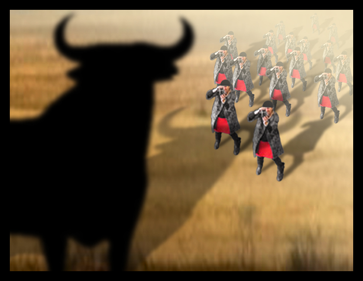 Pjotr hat sich wohl den Osborne-Stier zum Vorbild genommen, von denen auch in Madrid zwei zu finden sind. Auf einem Berggipfel machen sie sich jedoch weit besser, und das lässt auch die Perspektive eher vermuten.