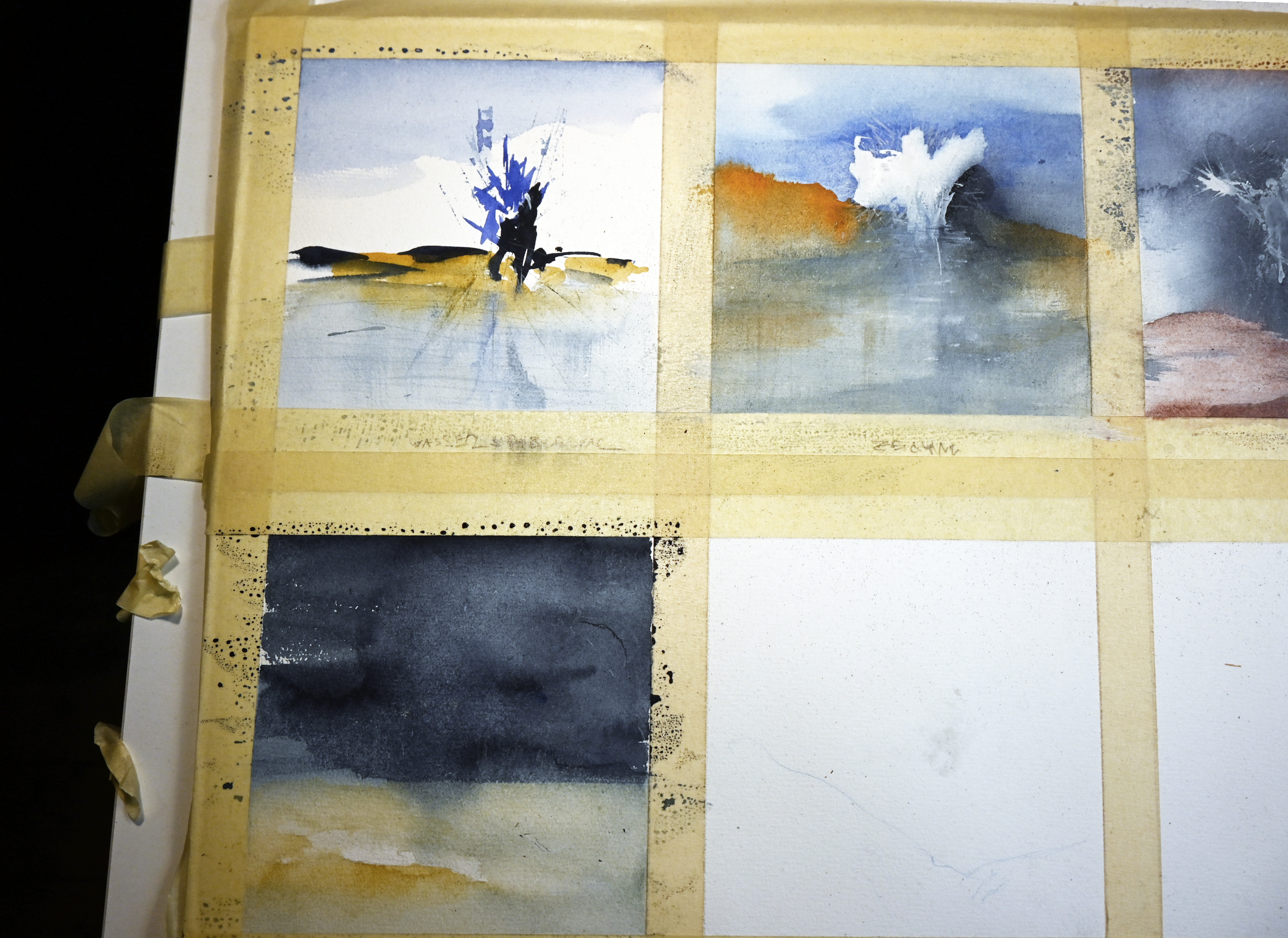 Weitergedacht in Tontrennung als Aquarell auf schwarzem Karton:
