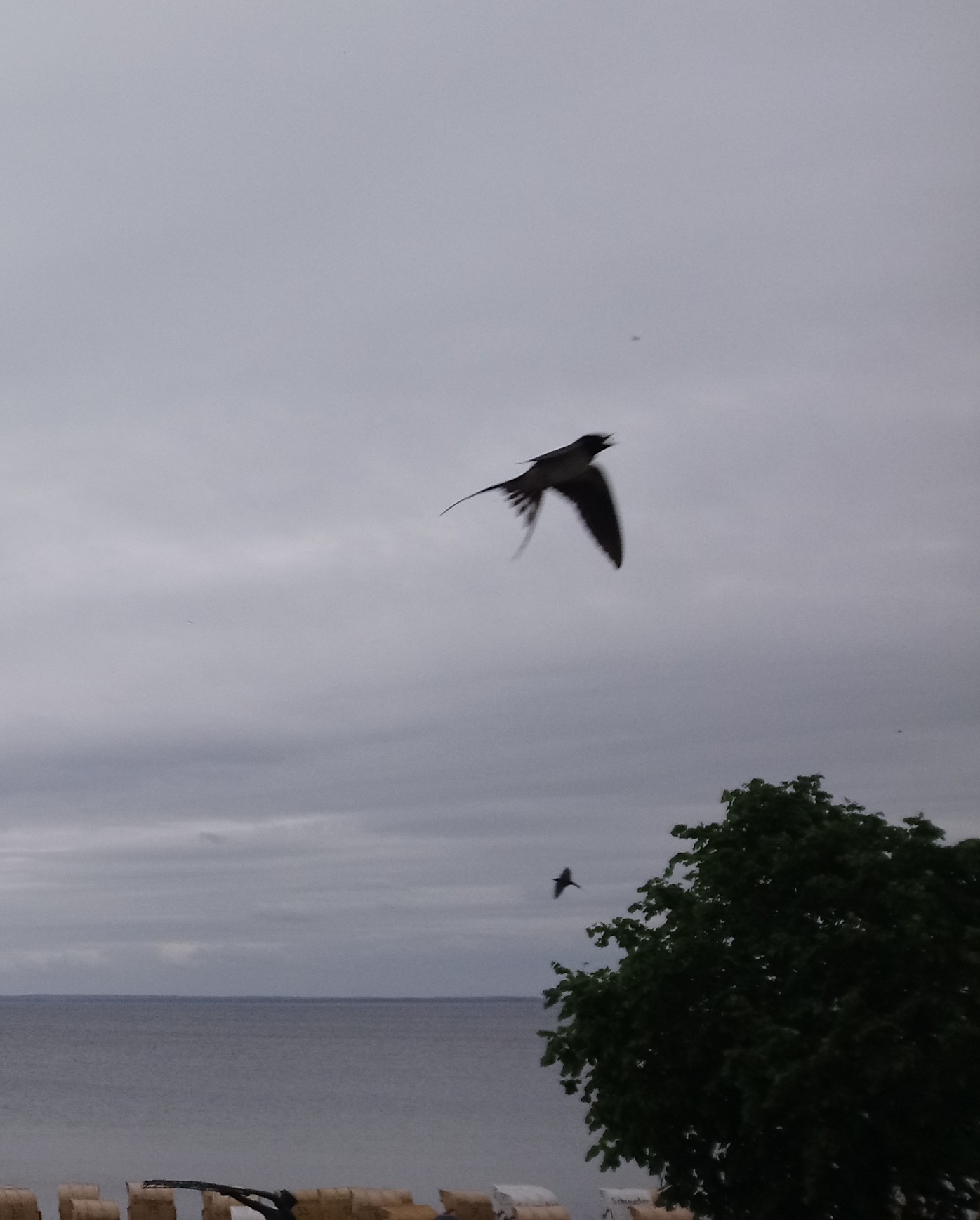 Gestern Abend schossen eine Menge Schwalben vor unserem Balkon Kreuz und quer. Dabei konnte ich einen Schnappschuss machen, wo man sieht, wie die Schwalbe gerade in dem Moment wo ich knipse, nach einem Insekt im Flug schnappt.....