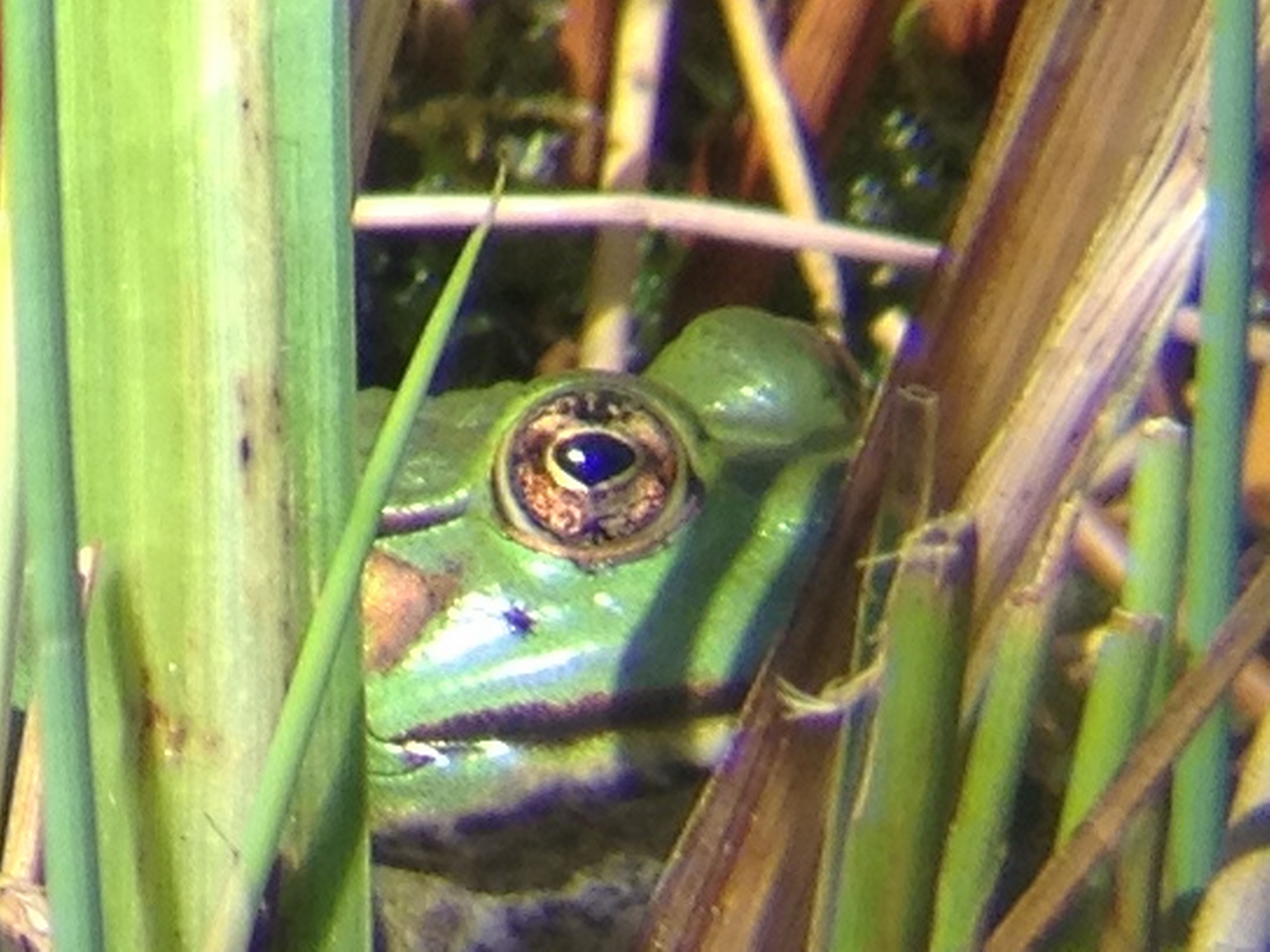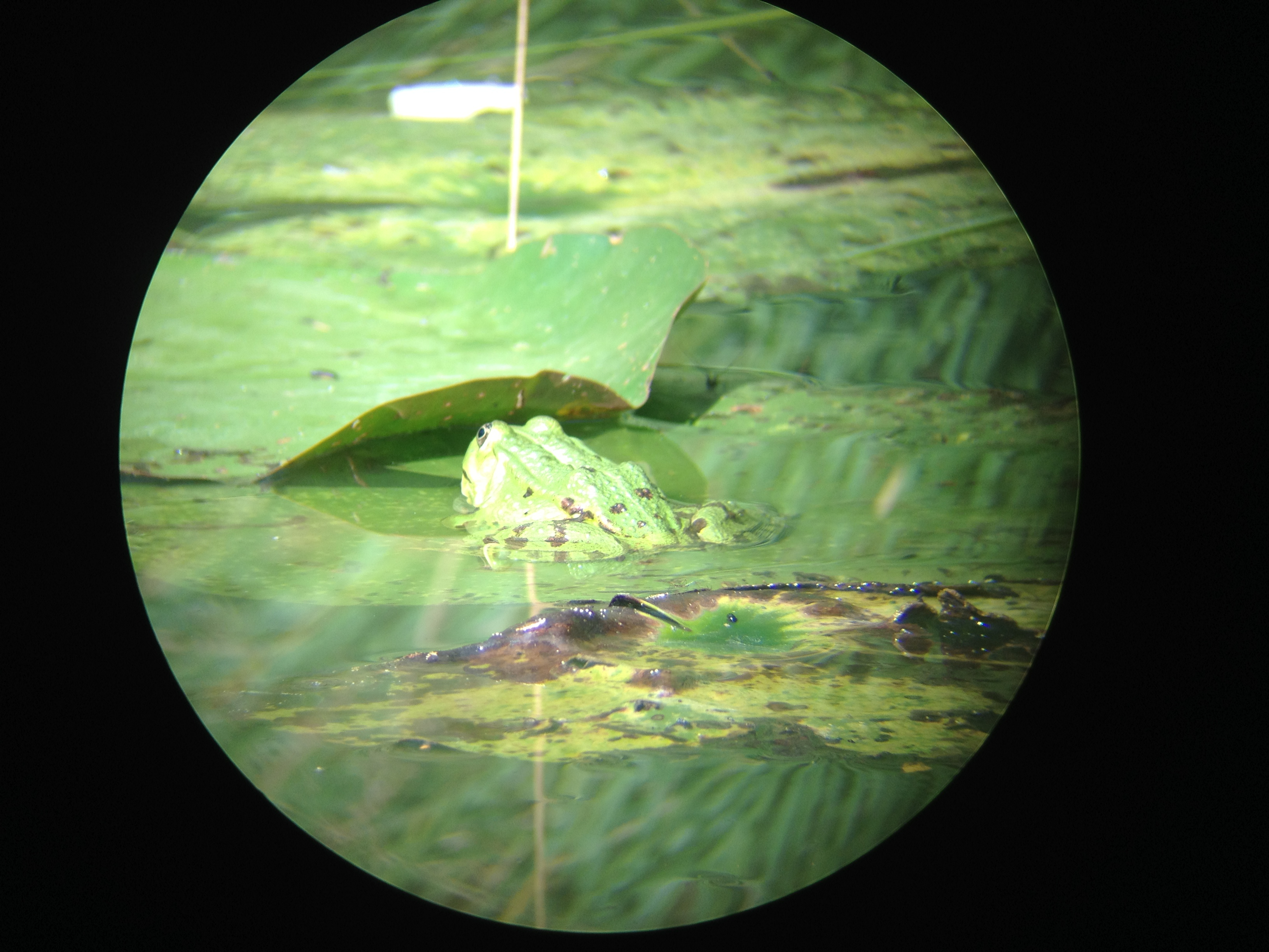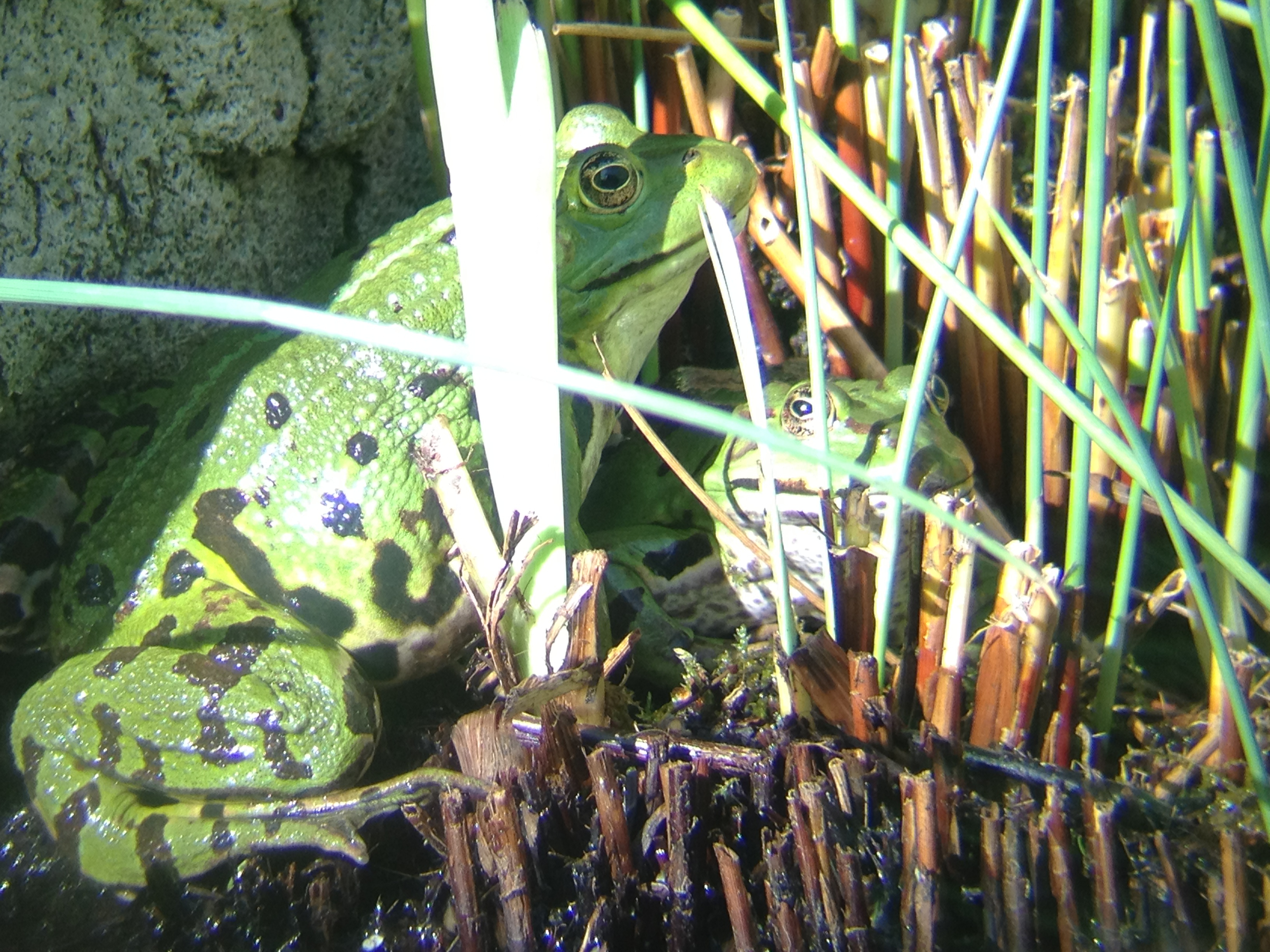 Teichfrösche, aus ca. 12 m Entfernung aufgenommen (Teich meiner Schwiegermutter)