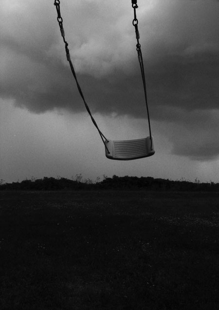 ... nie werde ich die leere Schaukel vergessen, vom Wind getrieben, wie sie gegen den dunklen Himmel schwang, geradewegs, als würde das Unheil hinter dem Hügelkamm lauern.