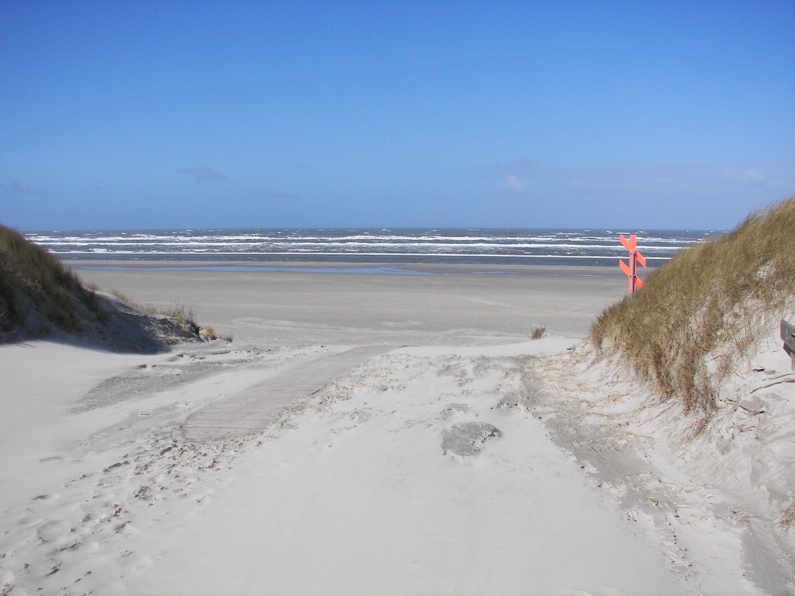 Mit dem Kreuz werden die Dünenübergänge gekennzeichnet, die sieht man sonst mitunter bei Sandsturm, Regen oder Dunkelheit nicht.