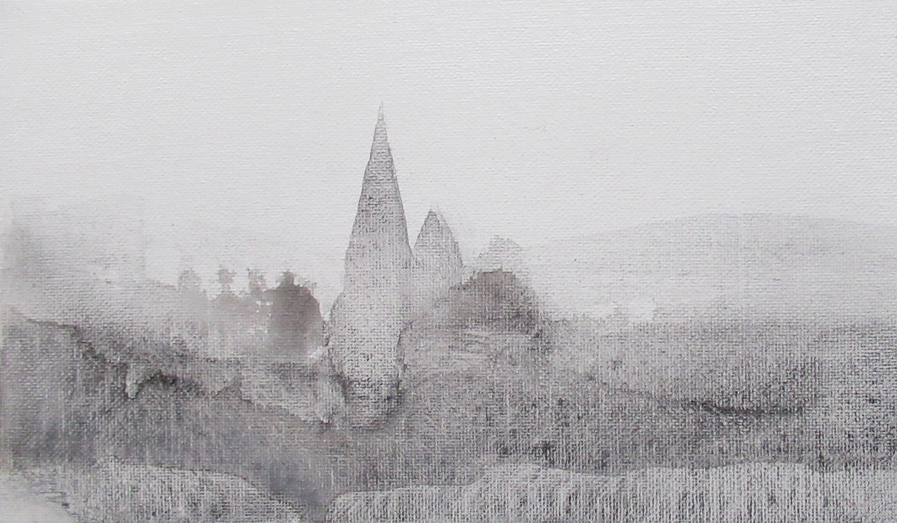Das Bild: Perfekt, wie ich finde. Multi-sinnlich. Es gibt Licht, Geruch, und -- Hautberührung, dank des in Szene gesetzten Leinwandtextils, das den Dunst buchstäblich verinnerlicht und greifbar macht; die Ansicht fühlt sich an wie wohltuende Kleidung auf der Haut, und gleichzeitig bleibt die landschaftliche Raumtiefe eine große Weite. Ein schöner, spannender Zustand zwischen Eingehüllt und Ausgehüllt.