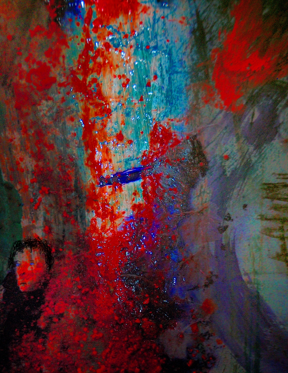 da ist am linken unteren Rand ein Kopf zu sehen und fast mittig dieser harte kurze Strich, schwarz und kräftig Blau, das ist es, was ich unter dem Titel verstehe. Geburt und Tod.