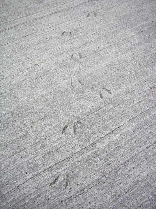 Zum Glück enden die Spuren nicht in der Mitte. Was wäre passiert, wenn das Vögelchen mit schmutzigen Füßen, mit Betonschuhen, nachher fischen gegangen wäre?