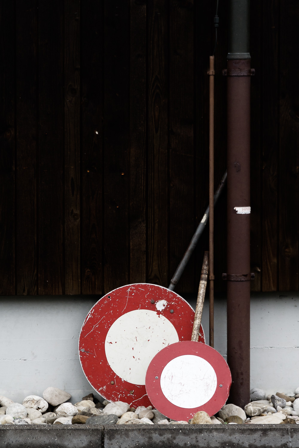 Müsst ihr immer alles auf den Kopf stellen? Verbotsschilder, die man frei befüllen kann. Bei dem Wort zieht eine Gänsehaut über ihre Gedanken, sie sieht es ihren Augen an. Dabei schwenken sie großzügig die Hand und weisen von sich weg ins Weite. Wie der Vater, so der Sohn. Sie grübeln über das Weiß und hangeln sich am Rot entlang, um nur sich selbst wieder zu finden. Und sie? Sie ordnet die Steine zu ihren Füßen.