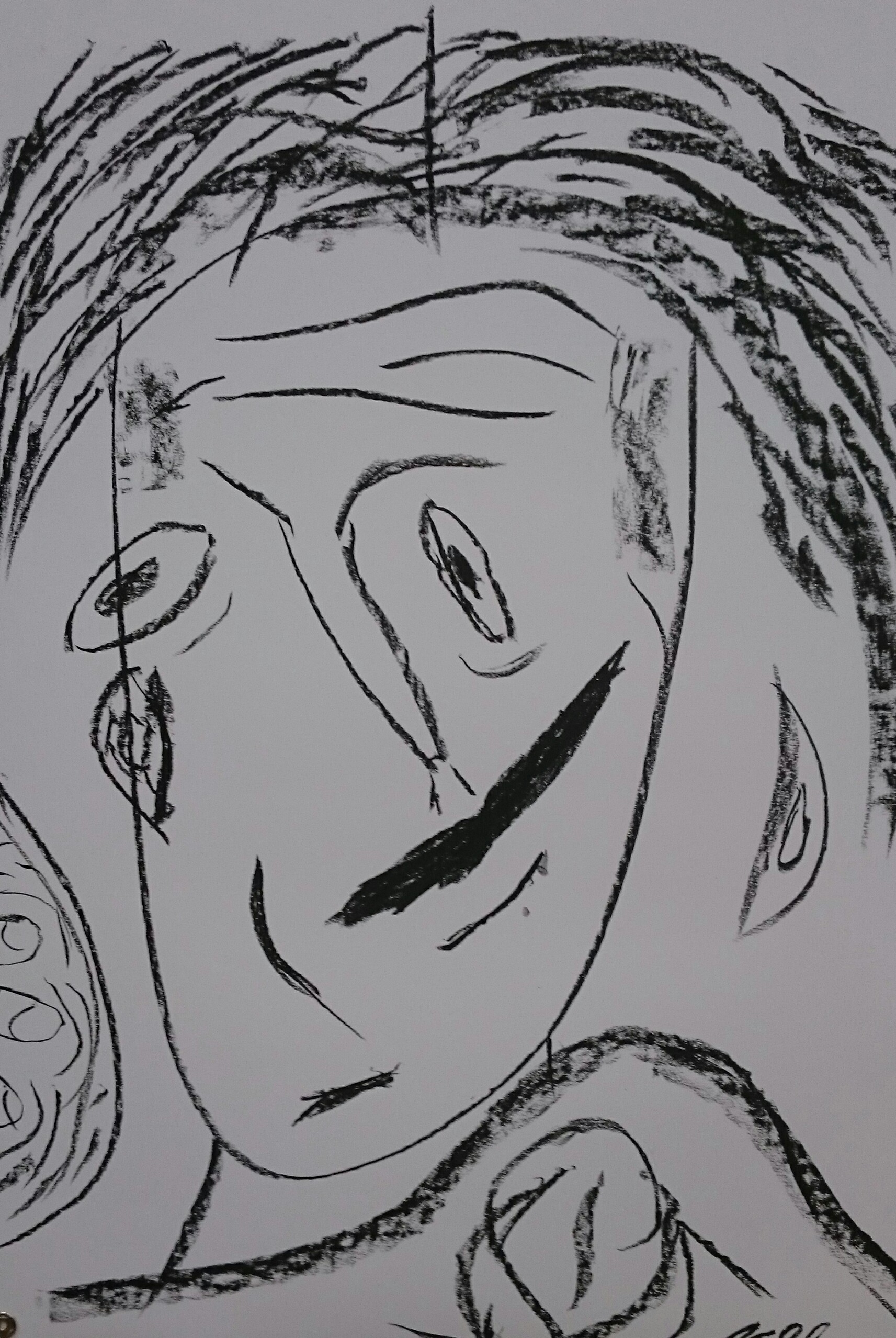 ich kann mit diesem Bild hier nicht so viel anfangen, es sieht zum einen aus, als hättest du nur das Abbild von dem herausgelassen, was du unter Malen verstehst (ein bisschen Picasso, ein bisschen rauere, schlichte Kohle), zum anderen sieht es aus, als hättest du nicht viel Mühe darauf verwendet.